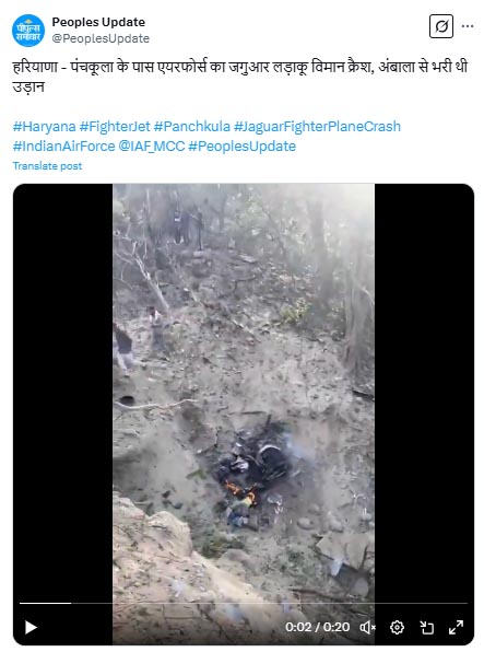 जानकारी के मुताबिक, लड़ाकू विमान ने अंबाला एयरबेस से रूटीन ट्रेनिंग मिशन के तहत उड़ान भरी थी। कुछ समय बाद ही तकनीकी खराबी के कारण विमान नियंत्रण खो बैठा और क्रैश हो गया। पायलट ने सूझबूझ दिखाते हुए समय रहते इजेक्ट कर लिया, जिससे उसकी जान बच गई।