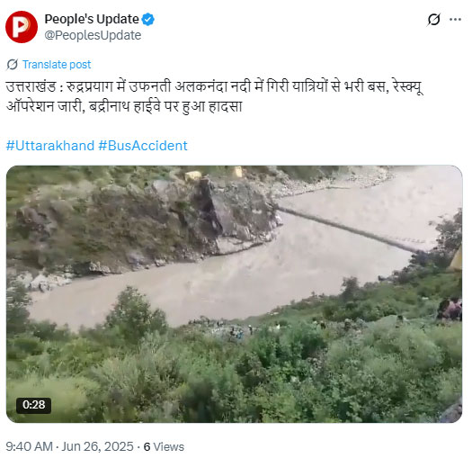 यह हादसा बुधवार को तब हुआ जब यात्रियों से भरी ट्रैवलर गाड़ी, जो केदारनाथ से बद्रीनाथ की ओर जा रही थी, बद्रीनाथ हाईवे पर अनियंत्रित होकर सीधे अलकनंदा नदी में गिर गई। वर्तमान में SDRF, NDRF, पुलिस और प्रशासन की टीमें राहत कार्य में जुटी हुई हैं।