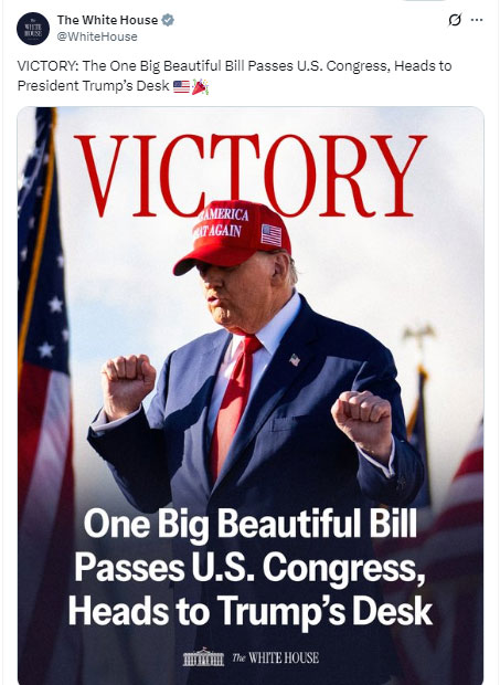 इससे पहले यह बिल सीनेट में भी पास हो चुका है जहां 50-51 के मामूली अंतर से इसे मंजूरी मिली थी। उप-राष्ट्रपति जेडी वेंस ने निर्णायक वोट डाला था।