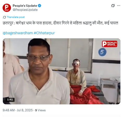 घटना छतरपुर जिले के गढ़ा गांव स्थित बागेश्वर धाम परिसर के पास एक धर्मशाला में हुई, जहां कई श्रद्धालु रात्रि विश्राम कर रहे थे। रात करीब 3 बजे अचानक धर्मशाला की दीवार भरभराकर गिर गई। हादसे में मिर्जापुर (उत्तर प्रदेश) निवासी अनीता देवी खरवार (40 वर्ष) की मौके पर ही मौत हो गई, जबकि उनके साथ ठहरे अन्य लोग मलबे में दबकर घायल हो गए।
