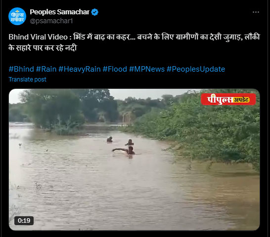 भिंड। मध्य प्रदेश में लगातार हो रही बारिश के चलते कई जिलों में बाढ़ जैसे हालात बन गए हैं। भिंड में भी बारिश के चलते डैम से छोड़े जा रहे पानी की वजह से सिंध,कुंवारी, बेसली नदियां उफान पर है। दूसरी तरफ बांधों के गेट खोले जा रहे हैं, जिसकी वजह से ग्रामीणों को नदी पार करने में समस्या हो रही है। ऐसे में उन्होंने नदी पार करने के लिए एक ऐसा देसी जुगाड़ लगाया गया, जिसे जानकर आप भी हैरान रह जाएंगे।