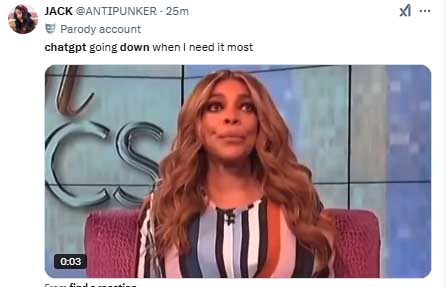 सोशल मीडिया प्लेटफॉर्म्स पर X पर यूजर्स ने ChatGPT को ट्रॉल करना शुरू कर दिया। कई मीम्स और चुटकुले शेयर किए गए, जो इस बात को उजागर करते हैं कि बिना ChatGPT के लोगों को कितनी परेशानी हो रही है। कुछ लोगों ने मजाक में यह भी कहा कि अब उन्हें ‘सोचना’ होगा क्योंकि ChatGPT उपलब्ध नहीं है।