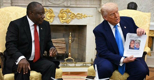 न्यूयॉर्क। अमेरिकी राष्ट्रपति डोनाल्ड ट्रंप और दक्षिण अफ्रीका के राष्ट्रपति सिरिल रामफोसा के बीच वॉशिंगटन डीसी में 21 मई को एक अहम मुलाकात हुई। इस दौरान व्हाइट हाउस में दोनों के बीच तीखी बहस हुई। ये मुलाकात उस वक्त विवाद का रूप ले बैठी जब ट्रंप ने दक्षिण अफ्रीका में श्वेत किसानों पर अत्याचार और उनकी हत्या का मुद्दा उठाया। बैठक के दौरान मीडिया की मौजूदगी में दोनों नेताओं के बीच नस्लवाद, जमीन अधिग्रहण और अंतरराष्ट्रीय सहायता को लेकर तीखी बहस हुई।