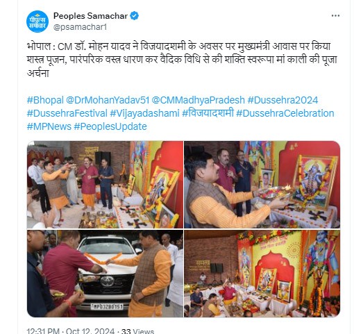 शस्त्र पूजन का धार्मिक महत्व है : सीएम