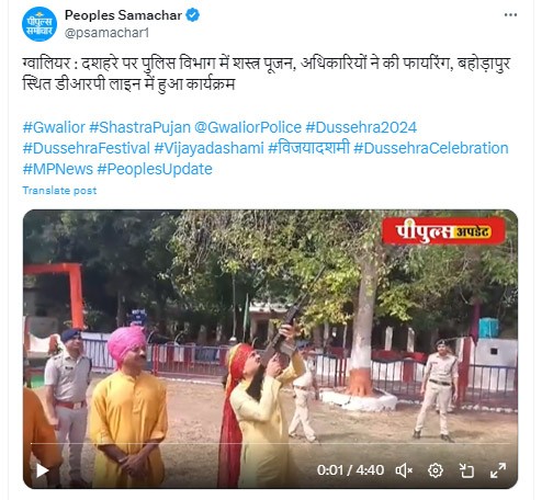 मुख्यमंत्री डॉ. यादव ने कहा कि विजयादशमी पर शस्त्र पूजन का महत्वपूर्ण सांस्कृतिक और धार्मिक महत्व है, जो हिंदू सनातन परंपरा से जुड़ा हुआ है। यह व्यक्ति को उसके कर्तव्यों के प्रति जागरूक करता है और अधर्म के खिलाफ लड़ने की प्रेरणा देता है।