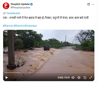 गनीमत यह रही कि ई-रिक्शा आगे जाकर चट्टानों में फंस गया, जिससे वह और आगे नहीं बह सका। इसी का फायदा उठाकर स्थानीय लोगों ने तत्काल राहत कार्य शुरू किया और ई-रिक्शा में सवार सभी लोगों को सुरक्षित बाहर निकाल लिया। हादसे में कोई हताहत नहीं हुआ, लेकिन ई-रिक्शा को गंभीर नुकसान पहुंचा है।