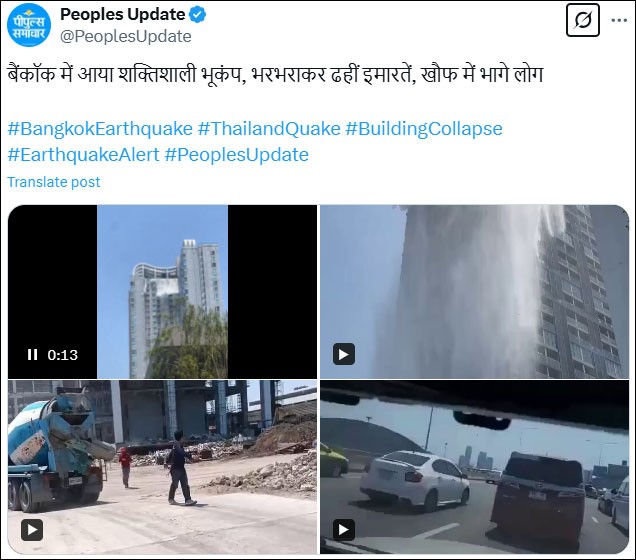 भूकंप के झटकों के कारण बैंकॉक में एक निर्माणाधीन गगनचुंबी इमारत गिर गई, जिससे इलाके में दहशत फैल गई। हालांकि, अब तक किसी बड़े जान-माल के नुकसान की पुष्टि नहीं हुई है। स्थानीय प्रशासन और राहत टीमें स्थिति पर नजर बनाए हुए हैं।