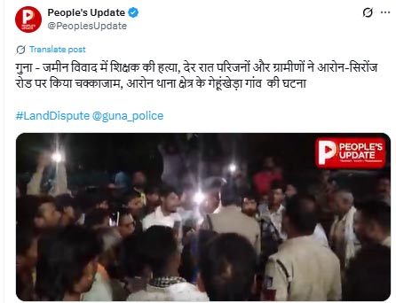 गुना। जिले के आरोन थाना क्षेत्र के गेहूंखेड़ा गांव में शनिवार शाम जमीन विवाद को लेकर हुई हिंसक वारदात के बाद देर रात हालात तनावपूर्ण हो गए। विवाद में घायल शिक्षक की मौत के बाद परिजनों और समाज के लोगों ने आरोन-सिरोंज स्टेट हाईवे पर शव रखकर चक्काजाम कर दिया।