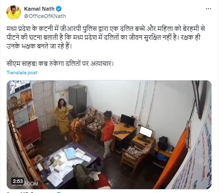 पूर्व सीएम कमलनाथ ने इस मामले की निंदा करते हुए X पर लिखा, ''मध्य प्रदेश के कटनी में जीआरपी पुलिस द्वारा एक दलित बच्चे और महिला को बेरहमी से पीटने की घटना बताती है कि मध्य प्रदेश में दलितों का जीवन सुरक्षित नहीं है। रक्षक ही उनके भक्षक बनते जा रहे हैं। सीएम साहब! कब रुकेगा दलितों पर अत्याचार।