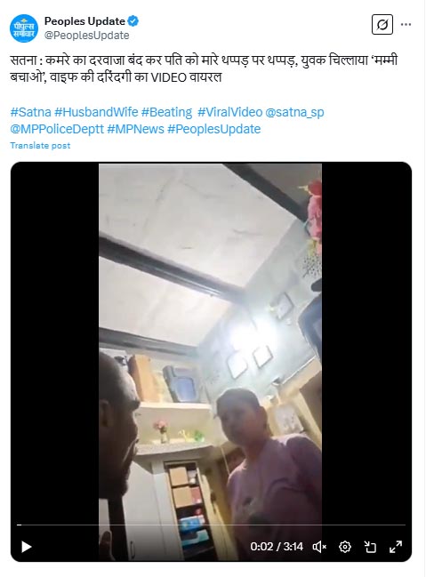 सतना। मध्य प्रदेश के सतना जिले में एक पति की घरेलू हिंसा का शिकार होने की घटना सामने आई है, जिसका वीडियो इंटरनेट पर तेजी से वायरल हो रहा है। वायरल वीडियो में एक पत्नी अपने पति को कमरे में बंद करके बेरहमी से पीटती नजर आ रही है, जबकि पति "मम्मी बचाओ, मम्मी बचाओ" की गुहार लगा रहा है।