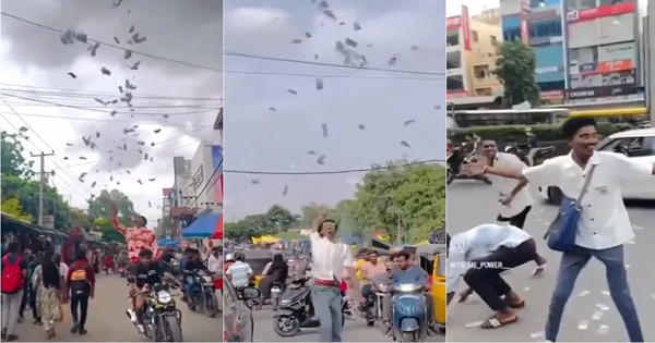 सोशल मीडिया पर वायरल हो रहा वीडियो हैदराबाद के कुकटपल्ली इलाके का है। वायरल हो रहे एक वीडियो में यूट्यूबर हर्ष एक शख्स की बाइक के पीछे बैठा हुआ है। इसके बाद भीड़भाड़ वाले इलाके में यूट्यूबर चलती बाइक से नोटों की गड्डी को हवा में उछाल देता है। हर्ष सोशल मीडिया पर ‘its_me_power’ नाम से मशहूर हैं। वीडियो में आप देख सकते हैं कि यूट्यूबर के स्टंट से ट्रैफिक में अफरा-तफरी मच जाती है। नोट लूटने के चक्कर में लोग इधर-उधर दौड़ने लगते हैं। वहीं दूसरी क्लिप में पावर हर्षा नामक यूट्यूबर को हैदराबाद की भीड़-भाड़ वाली जगह पर पैसे फेंकते भी देखा गया। इसकी वजह से वहां भी लोगों में भगदड़ मच गई।
