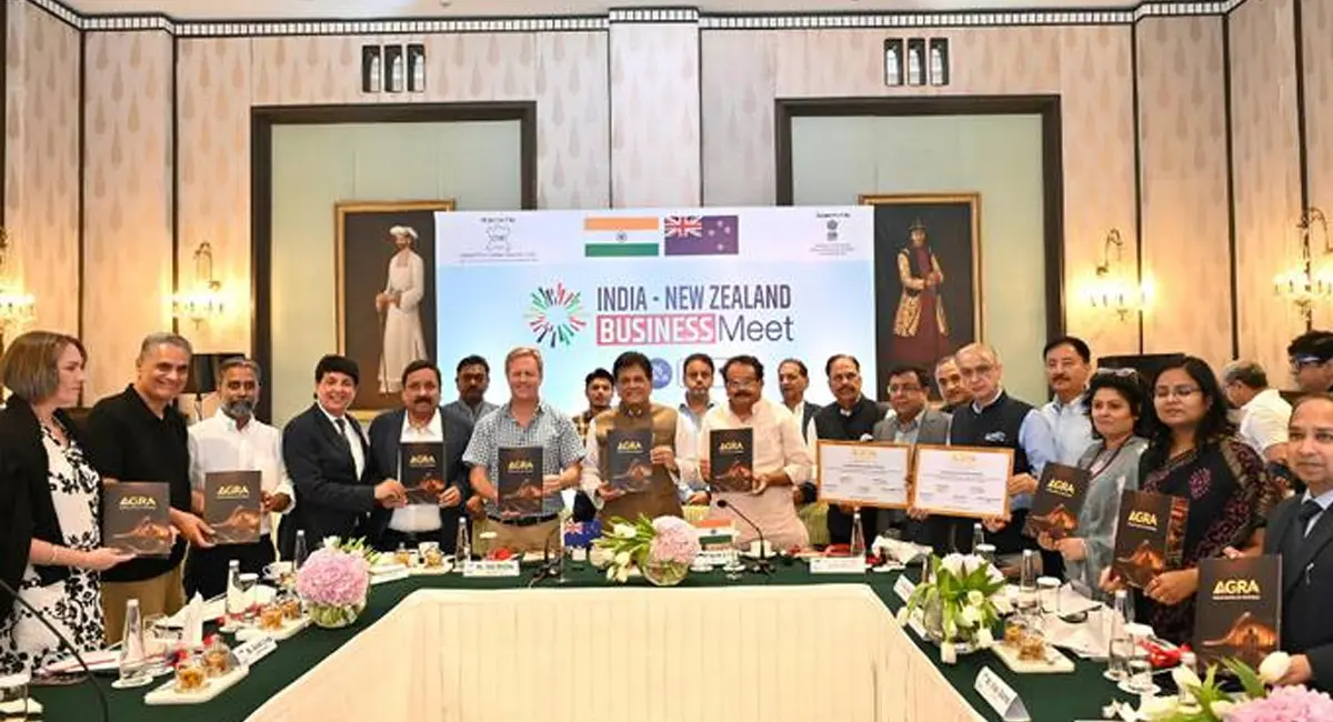 भारत और न्यूजीलैंड के बीच फ्री ट्रेड एग्रीमेंट (FTA) साइन हो गया है। यह समझौता केंद्रीय मंत्री पीयूष गोयल और न्यूजीलैंड के ट्रेड मंत्री टॉड मैक्ले की मौजूदगी में हुआ। इस समझौते को दोनों देशों के आर्थिक रिश्तों में बड़ा कदम माना जा रहा है जो आने वाले वर्षों में व्यापार और निवेश को नई रफ्तार देगा।