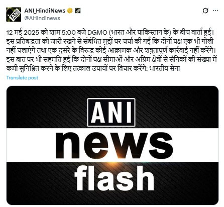 नई दिल्ली। भारत और पाकिस्तान के बीच सोमवार को DGMO (डायरेक्टर जनरल ऑफ मिलिट्री ऑपरेशंस) स्तर की अहम वार्ता हुई। यह बैठक दोपहर 12 बजे शुरू होकर शाम 5 बजे तक चली। दोनों देशों ने सीमावर्ती क्षेत्रों में गोलीबारी और सैन्य आक्रामकता पर विराम लगाने की प्रतिबद्धता दोहराई है।