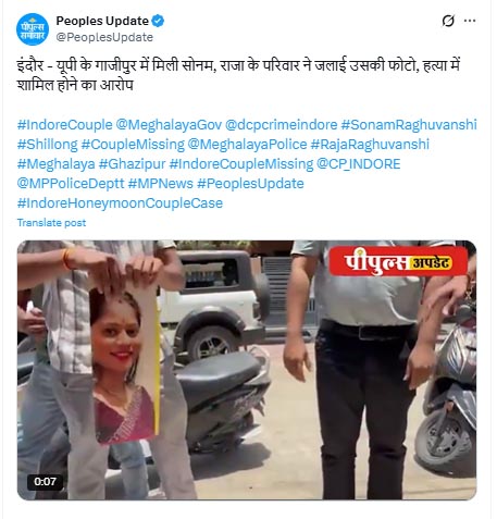 राजा रघुवंशी के परिवार ने जब यह खबर सुनी कि सोनम जिंदा है और गाजीपुर में पाई गई है, तो उन्होंने घर पर लगे पोस्टर और सोनम की तस्वीरें फाड़ दीं और उन्हें जला दिया। राजा के बड़े भाई विपिन रघुवंशी ने कहा- अगर सोनम इस हत्याकांड में शामिल है, तो उसे सज़ा-ए-मौत मिलनी चाहिए। अब हम सीधा सवाल करते हैं। राजा की हत्या किसने की? अगर यह एक साजिश थी, तो हम पीछे नहीं हटेंगे।