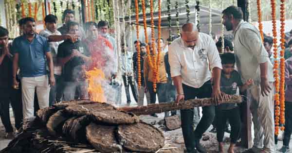 इंदौर। मेघालय के शिलांग में रहस्यमय हालात में मारे गए इंदौर के ट्रांसपोर्टर राजा रघुवंशी का शव बुधवार शाम करीब 5 बजे इंदौर लाया गया। एयरपोर्ट से शव को सबसे पहले उनके घर लाया गया, जहां परिजन और रिश्तेदार अंतिम दर्शन के लिए पहुंचे। इसके बाद शव को अंतिम यात्रा के लिए रीजनल पार्क मुक्तिधाम ले जाया गया। गम और सन्नाटे के बीच राजा का अंतिम संस्कार किया गया।