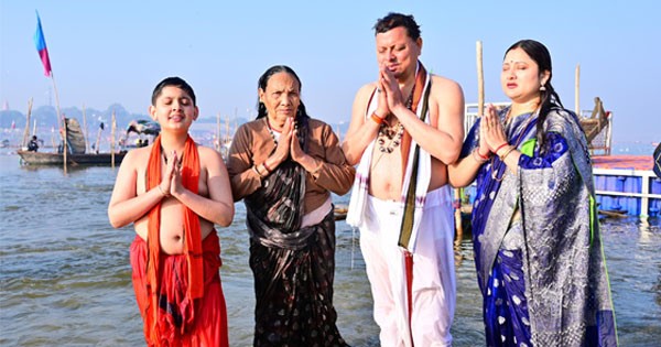 उत्तराखंड के मुख्यमंत्री पुष्कर सिंह धामी ने सोमवार को परिवार संग त्रिवेणी संगम में स्नान किया। एक आधिकारिक बयान में यह जानकारी दी गई। मुख्यमंत्री धामी ने महाकुंभ को धार्मिक महापर्व बताया और कहा कि संगम में डुबकी लगाना पुण्य का काम है।