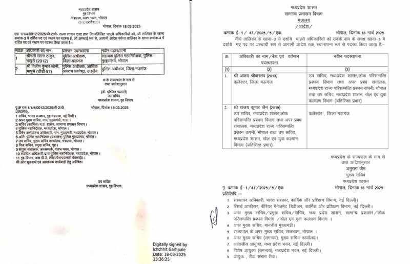 वहीं, एसपी रसना ठाकुर को हटाकर भोपाल पुलिस मुख्यालय में सहायक पुलिस महानिरीक्षक (एआईजी) के पद पर भेजा गया है। उनकी जगह उज्जैन आर्थिक अपराध प्रकोष्ठ (ईओडब्ल्यू) के एसपी दिलीप कुमार सोनी को मऊगंज का नया एसपी नियुक्त किया गया है।