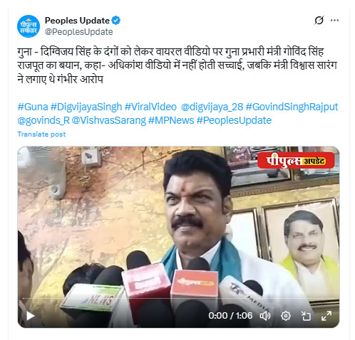 पूर्व मुख्यमंत्री दिग्विजय सिंह के एक वायरल वीडियो में दंगे कराने की बात सामने आने पर मंत्री राजपूत ने कहा कि ऐसी क्लिप्स की वास्तविकता खुद दिग्विजय सिंह ही स्पष्ट कर सकते हैं। उन्होंने यह भी जोड़ा कि अक्सर उनके वीडियो की असलियत कुछ और ही निकलती है।