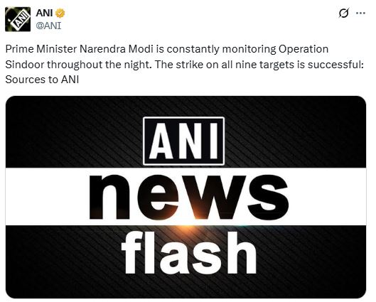 सूत्रों ने बताया कि प्रधानमंत्री नरेंद्र मोदी ने ऑपरेशन सिंदूर पर रातभर नजर बनाए रखी और स्थिति की लगातार समीक्षा की। केंद्र सरकार की स्पष्ट नीति है कि आतंक के खिलाफ कोई समझौता नहीं किया जाएगा और देशवासियों की सुरक्षा सर्वोपरि है।