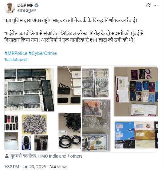 पन्ना एसपी साईं कृष्णा एस थोटा ने बताया कि इस हाई-टेक साइबर ठगी के मामले में स्टेट साइबर सेल, मध्य प्रदेश पुलिस, केंद्रीय तकनीकी एजेंसियां, और अन्य राज्यों की पुलिस इकाइयों के साथ मिलकर विस्तृत जांच जारी है। यह एक बेहद अनोखा और तकनीकी रूप से उन्नत साइबर अपराध का मामला है। भारत में प्रतिबंधित सिम बॉक्स, फर्जी सिम कार्ड और विदेशी नेटवर्क का इस्तेमाल कर भोले-भाले लोगों को ठगा जा रहा है। इस मामले में आगे भी कई कड़ियां जुड़ सकती हैं।