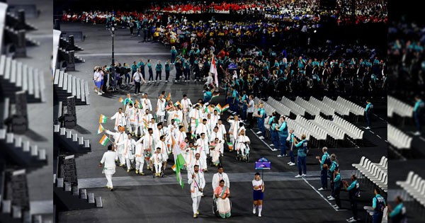 भारतीय भालाफेंक खिलाड़ी सुमित अंतिल और शॉटपुट खिलाड़ी भाग्यश्री जाधव संयुक्त ध्वजवाहक रहे। दोनों ने तिरंगे को लहराते हुए एंट्री की और उनके साथ पूरा भारतीय दल भी रहा। पेरिस समय के अनुसार, सेरेमनी की शुरुआत 8 बजे हुआ। भारत में यह आयोजन रात 11 बजे से लाइव देखा गया।