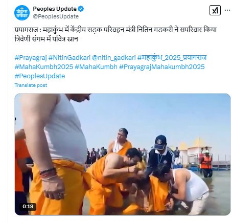 त्रिवेणी संगम में स्नान के बाद केंद्रीय मंत्री नितिन गडकरी ने सनातन परंपराओं की भव्यता को नमन करते हुए कहा कि महाकुंभ भारतीय संस्कृति की एकता और आध्यात्मिक शक्ति का प्रतीक है। यह आयोजन हमें हमारी जड़ों से जोड़ता है और पूरे समाज को एक सूत्र में पिरोने का कार्य करता है। आस्था, अध्यात्म और सनातन परंपराओं के भव्य संगम महाकुंभ में उन्होंने कहा कि ''महाकुंभ केवल एक धार्मिक आयोजन नहीं, बल्कि ‘एक भारत, श्रेष्ठ भारत' की भावना को मूर्त रूप देने वाला अवसर है, जहां संपूर्ण देश के लोग एक आस्था और संस्कृति में बंधे होते हैं।''