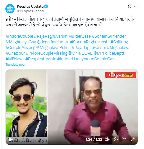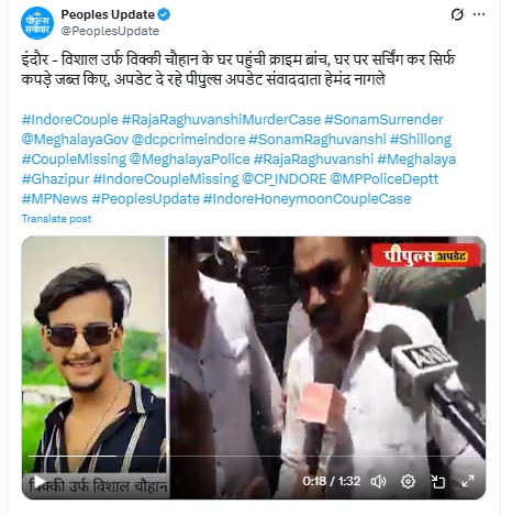 विशाल के घर पहुंची पुलिस टीम को घर की चाबी नहीं मिली, जिसके बाद टीम ने गेट फांदकर घर में प्रवेश किया। घर का कोना-कोना खंगाला गया। क्राइम ब्रांच की ओर से ACP पूनमचंद यादव ने बताया कि यह तलाशी राजा रघुवंशी की हत्या से जुड़ी जांच का हिस्सा है।