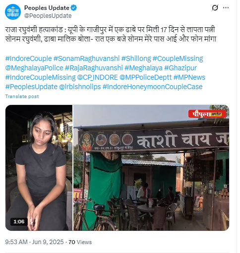ढाबा संचालक के मुताबिक, जब सोनम वहां पहुंची तो वह बेहद थकी हुई और डरी-सहमी दिख रही थी। काली टी-शर्ट और ट्राउजर में उसका चेहरा बुझा हुआ था और बाल बिखरे हुए थे। उसने सीधे फोन मांगा और बताया कि कुछ जरूरी बात करनी है। मैंने उसे फोन दिया। उसने बात की, फिर पुलिस को जानकारी देने पर कुछ देर बाद पुलिस आई और उसे अपने साथ ले गई। उसे तुरंत इलाज के लिए अस्पताल ले जाया गया और फिर गाजीपुर के वन स्टॉप सेंटर में रखा गया।