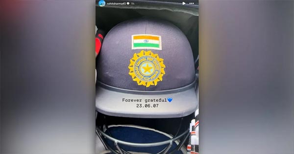रोहित ने अपनी इंस्टाग्राम स्टोरी में टीम इंडिया का ब्लू हेलमेट शेयर किया और उस पर लिखा- ‘हमेशा यादगार 23.06.07″, साथ ही उन्होंने लिखा, ‘मैं सदा आभारी रहूंगा’ और ब्लू हार्ट इमोजी भी जोड़ा। यह वही तारीख है जब उन्होंने पहली बार अंतरराष्ट्रीय क्रिकेट में कदम रखा था।