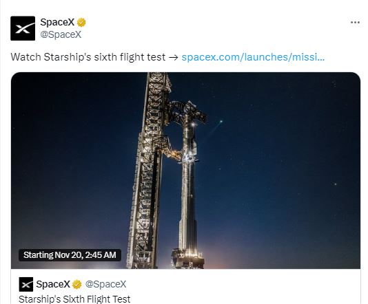 Starship के इस ऐतिहासिक टेस्ट फ्लाइट को SpaceX के आधिकारिक सोशल मीडिया चैनल्स और वेबसाइट पर लाइव देखा जा सकता है।