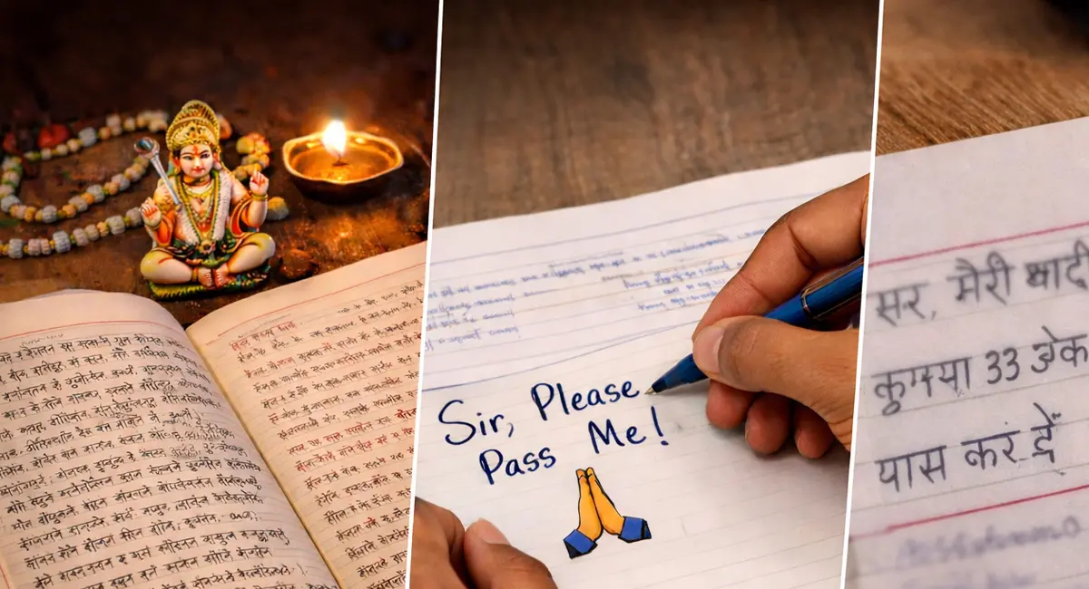 परीक्षा की उत्तर पुस्तिकाओं में छात्रों ने उत्तरों की जगह भावनात्मक अपीलें लिखीं, कुछ ने हनुमान चालीसा तो कुछ ने शादी बचाने की गुहार लगाई। जानिए, आखिर क्यों विद्यार्थियों ने परीक्षा में इस तरह का सहारा लिया और इसका क्या परिणाम हुआ।