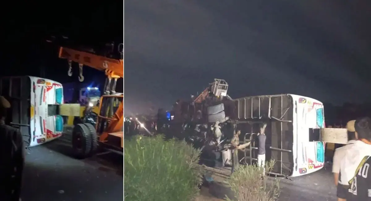 गुना में भीषण बस हादसा :लखनऊ से इंदौर जा रही बस बीनागंज में पलटी, एक की मौत और 16 घायल