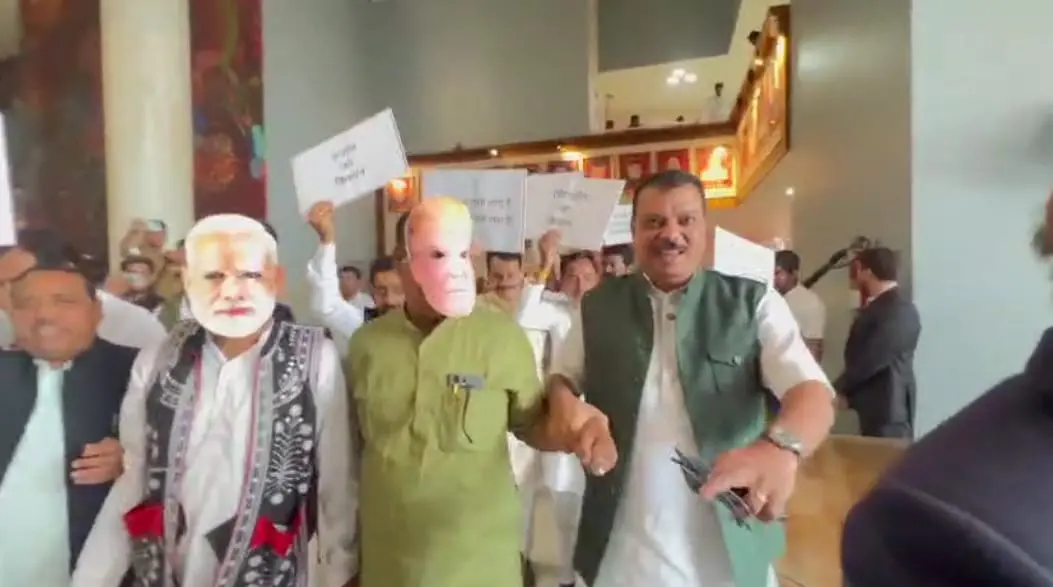 कांग्रेस विधायक ट्रेड डील का विरोध जताने के लिए अनोखे अंदाज़ में विधानसभा पहुंचे: उन्होंने मोदी और ट्रंप के मुखौटे पहनकर सरकार का ध्यान इस मुद्दे की ओर खींचा। जानिए क्या है इस विरोध प्रदर्शन का पूरा मामला और क्यों विधायक इस डील के खिलाफ हैं।