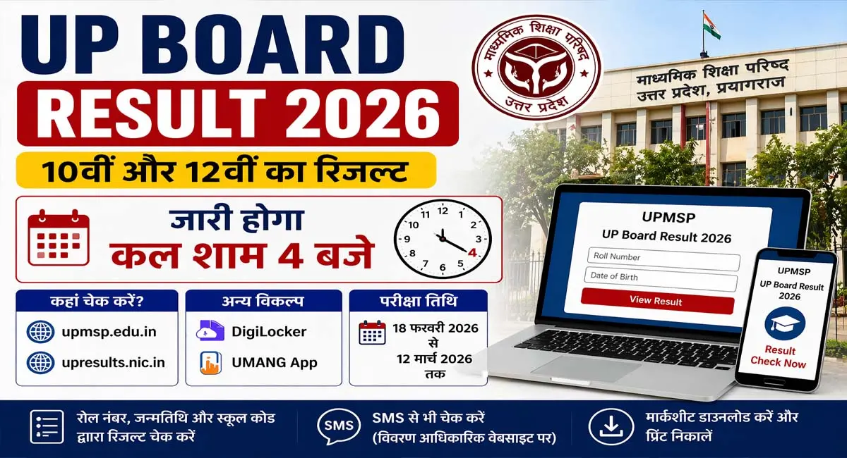 यूपी बोर्ड के लाखों छात्रों का इंतजार अब खत्म होने वाला है। उत्तर प्रदेश माध्यमिक शिक्षा परिषद (UPMSP) कल तय तारीख को शाम 4 बजे 10वीं और 12वीं के नतीजे घोषित करने जा रहा है। रिजल्ट प्रयागराज स्थित बोर्ड मुख्यालय से जारी किया जाएगा।