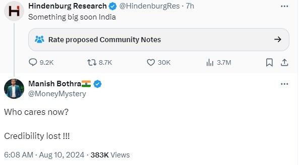 वहीं एक और यूजर मनीष बोथरा ने लिखा, ‘अब कोई इसकी परवाह नहीं करता। हिंडनबर्ग की प्रतिष्ठा अब खत्म हो चुकी है।’